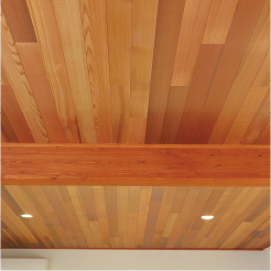 湿気に強く、耐久性にも優れた商品です。 そのため、デッキ材や外装材にも用いられます。 自然の温もりが感じられる美しい色調から外装・内装パネル材として人気があります。 樹脂(ヤニ)を含まないため、塗装の仕上がりがきれいで独特の濃淡を持ち、 腐食や虫などにも強く、壁や天井材にもびったりの材料です。 無節の美しさと木目のバラエティーをお楽しみいただけます。